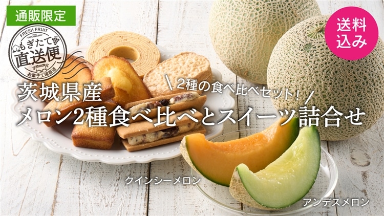 【通販限定】茨城県産メロン2種食べ比べとスイーツの詰合せ!