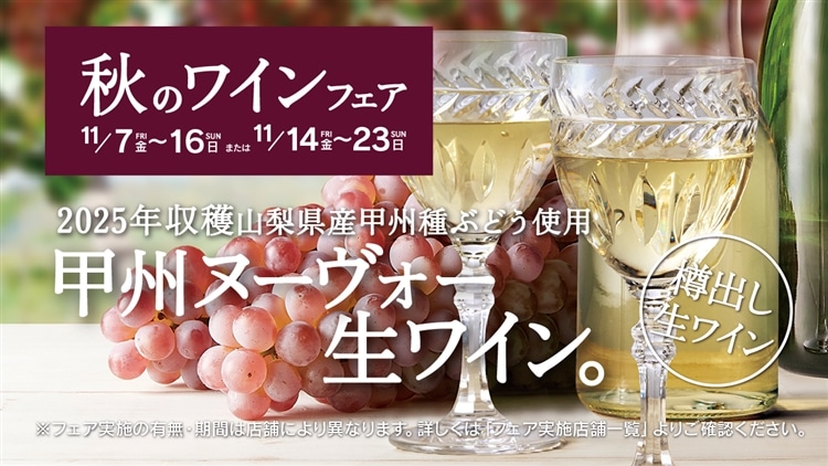 \秋ワインフェア/11月7日(金)より順次開催!柑橘系の爽やかな香りとしっかりとした酸味の「生ヌーヴォー」が登場。数量限定となりますのでお早めに!