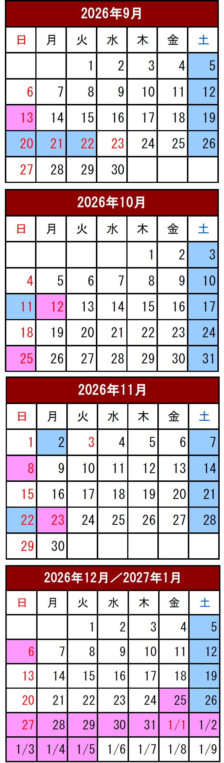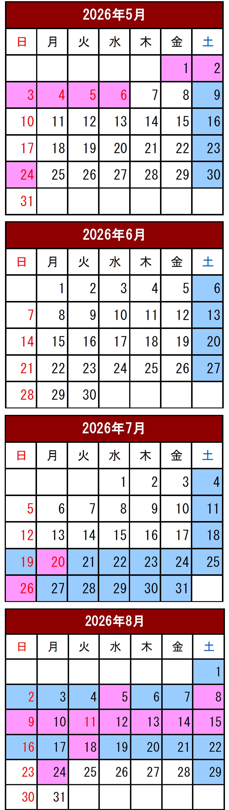 追加料金一覧<2026年シーズン>
