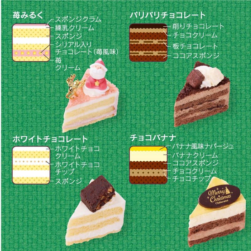 抹茶スポンジと抹茶クリーム、抹茶尽くしのほろ苦いケーキに、星チョコレートをトッピングしました。