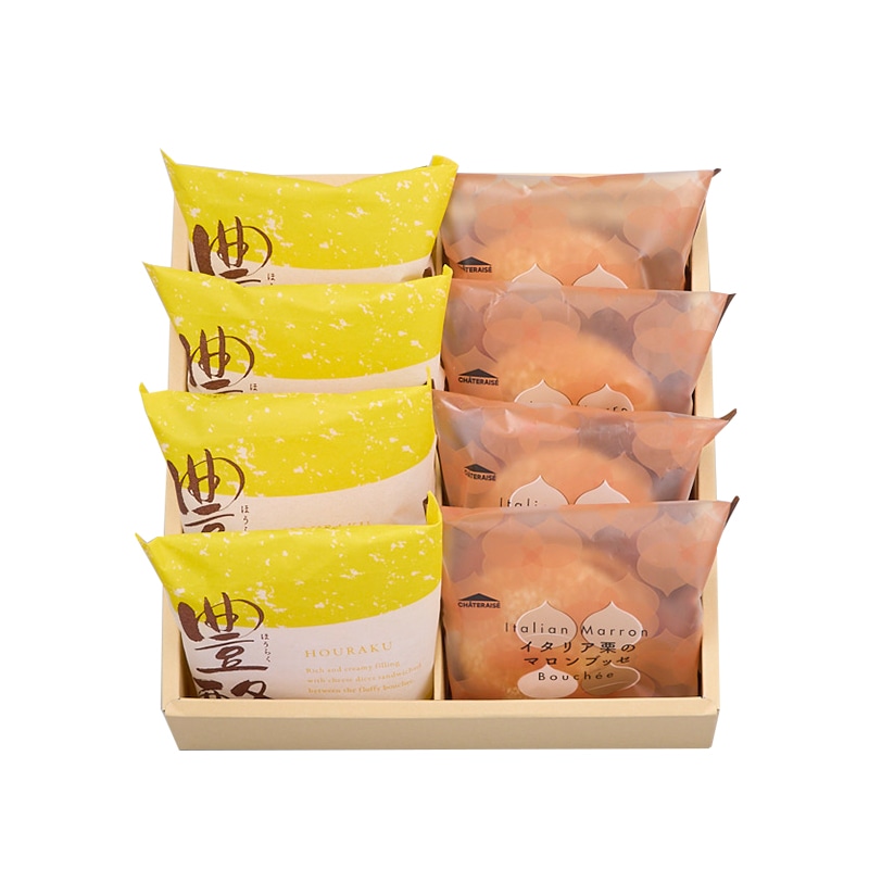豊酪:さっくりとした口当たり、ふんわり・しっとりとした食感に仕上げました。やさしい味わいのエダムチーズ・風味豊かなカマンベールの2種類のチーズパウダーに、酸味とさわやかな風味のダイス状のプロセスチーズをブレンドしクリームにあわせました。日本人にもっともポピュラーで馴染みのあるチーズを使用し、甘味と塩味のバランスの取れたクリームに仕上げました。 さっくり、ふんわり食感の口溶けの良いブッセ生地と、しっかりとした味わいのチーズクリームのバランスが絶妙な商品に仕上げました。