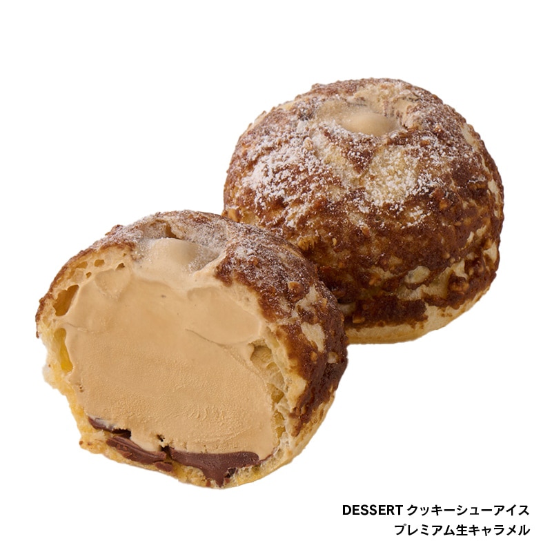 キャンディングアーモンドを混ぜ込んだクッキーをシュー生地にのせ、こんがりと香ばしく焼きあげたシューパフの中に、濃厚で滑らかな口溶けの生キャラメルアイスクリームと、それを包むようにパキっと食感のミルクチョコレートを詰めました。 香ばしいキャラメル風味クッキーシューと、食感も楽しく味にこだわったミルクチョコレートで、生キャラメルアイスの風味とコクを閉じ込めた 大人が楽しめるプレミアムなシューアイスに仕上げました。