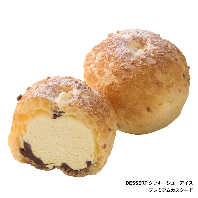 堅焼きクランチを混ぜ込んだバニラクッキーをシュー生地にのせ、こんがりと香ばしく焼きあげたシューパフの中に、濃厚でなめらかな口溶けのカスタードアイスクリームと、それを包むようにパキっと食感のミルクチョコレートを詰めました。 香ばしいバニラクッキーシューと、食感も楽しく味にこだわったミルクチョコレートで、カスタードアイスの風味とコクを閉じ込めた 大人が楽しめるプレミアムなシューアイスに仕上げました。