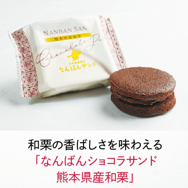 洋酒漬けレーズンとコクのあるクリームが魅力の「シャトー・レザン」は、ロゼスパークリングと相性抜群。「あまおう苺ブッセ」は、ふんわり軽い生地と苺の果実感が泡と心地よく調和します。苺とチョコの組み合わせが楽しい「なんばんショコラサンド 博多あまおう」も外せない存在です!さらに「なんばんショコラサンド 熊本県産和栗」は、和栗の香ばしさが樽を思わせ、どこかブランデーのような風味も感じられます。