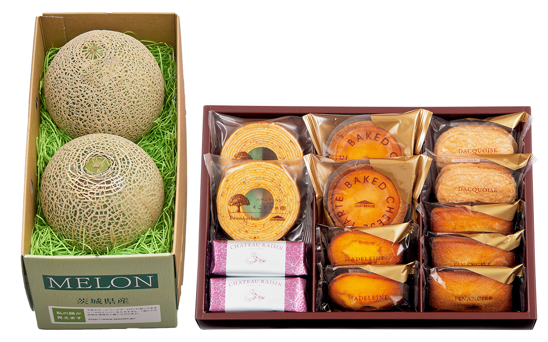 茨城県産メロン2種とガトーアソートの贅沢なセット!