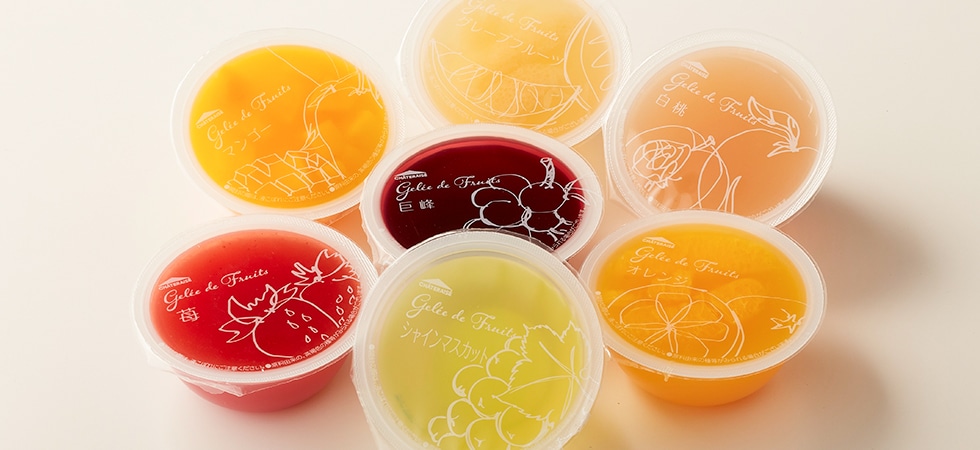 旬のフルーツとシャトレーゼのフルーツのジュレをセットにしてお届けいたします。