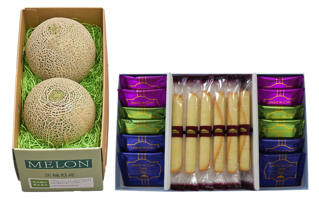 茨城県産メロン2種とラングドシャアソートメントの贅沢なセット!