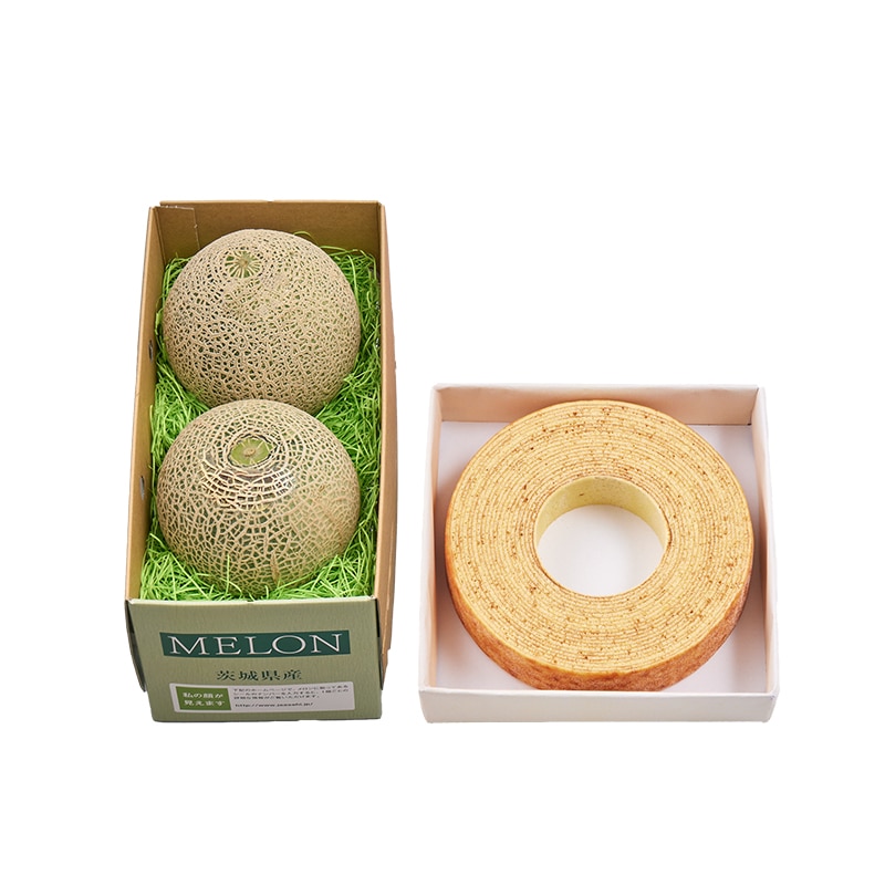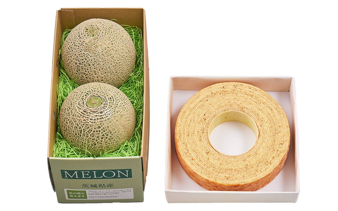 茨城県産メロン2種とバウムクーヘン14cmの贅沢なセット!