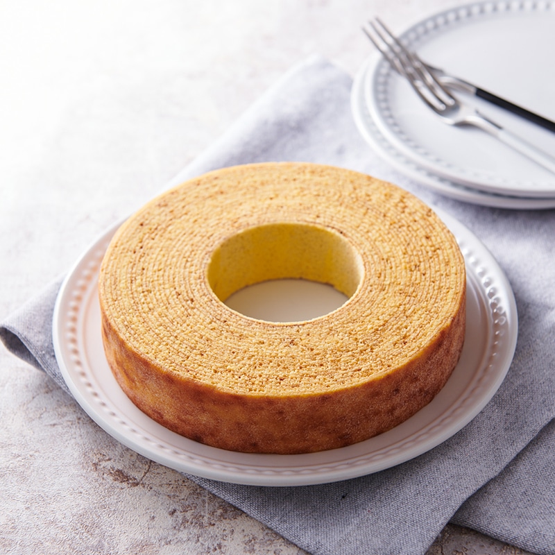 ドイツの伝統的な製法に基づいて作った、バウムクーヘンです。 しっとりと口溶けのよい食感になるように、職人の技術によって、一層ごと丁寧にふっくらと焼き上げました。最終層にしっかりと焼き色をつけています。 お菓子を召し上がっていただく皆様にすこやかな日々を送ってほしいという願いを込めて。