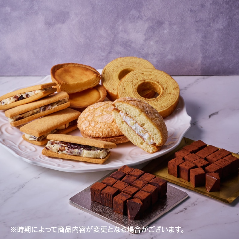 こだわった2種のレーズンの食感・風味とクリームのこくが絶妙な新しいレーズンサンドです。小粒のサルタナレーズンはブランデー、ホワイトラム、葡萄の蒸留酒で香り高い味わいに漬け込みました。大粒のフレームシードレスレーズンは自社関連ワイナリー直送・樽だし白ワイン、果実感溢れる青りんご酒に漬け込みました。レーズンとあわせるサンドクリームはクーベルチュールホワイトチョコレートとバターをふんだんに使用し、レーズンに負けないこくのあるクリームに仕立てております。口に入れた際にレーズンの食感が味わえるようにサブレ生地は歯もろい程よい固さにしました。 味わい深い洋酒漬けレーズンとコクのあるクリーム、香ばしく焼いた風味豊かなサブレが相性のよい焼き菓子です。時が経つと洋酒漬けレーズンが熟成されて、風味が変化していくのも特徴です。